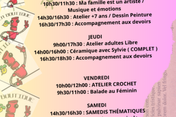 ✨ PROGRAMME DE LA SEMAINE – N°6 ✨📅 À La Boutique EVS de Lumbres Cette semaine, on se retrouve pour créer, se rencontrer, souffler et se détendre 💛 🫶 Des rencontres et des moments conviviaux🎨 Lire la suite…