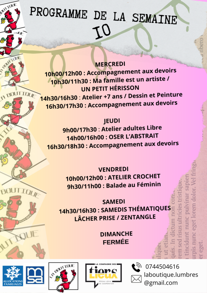 #LaBoutiqueEVS #ProgrammeDeLaSemaine #AteliersCreatifs #Dessin #Peinture #Partage #ArtPourTous #Lumbres